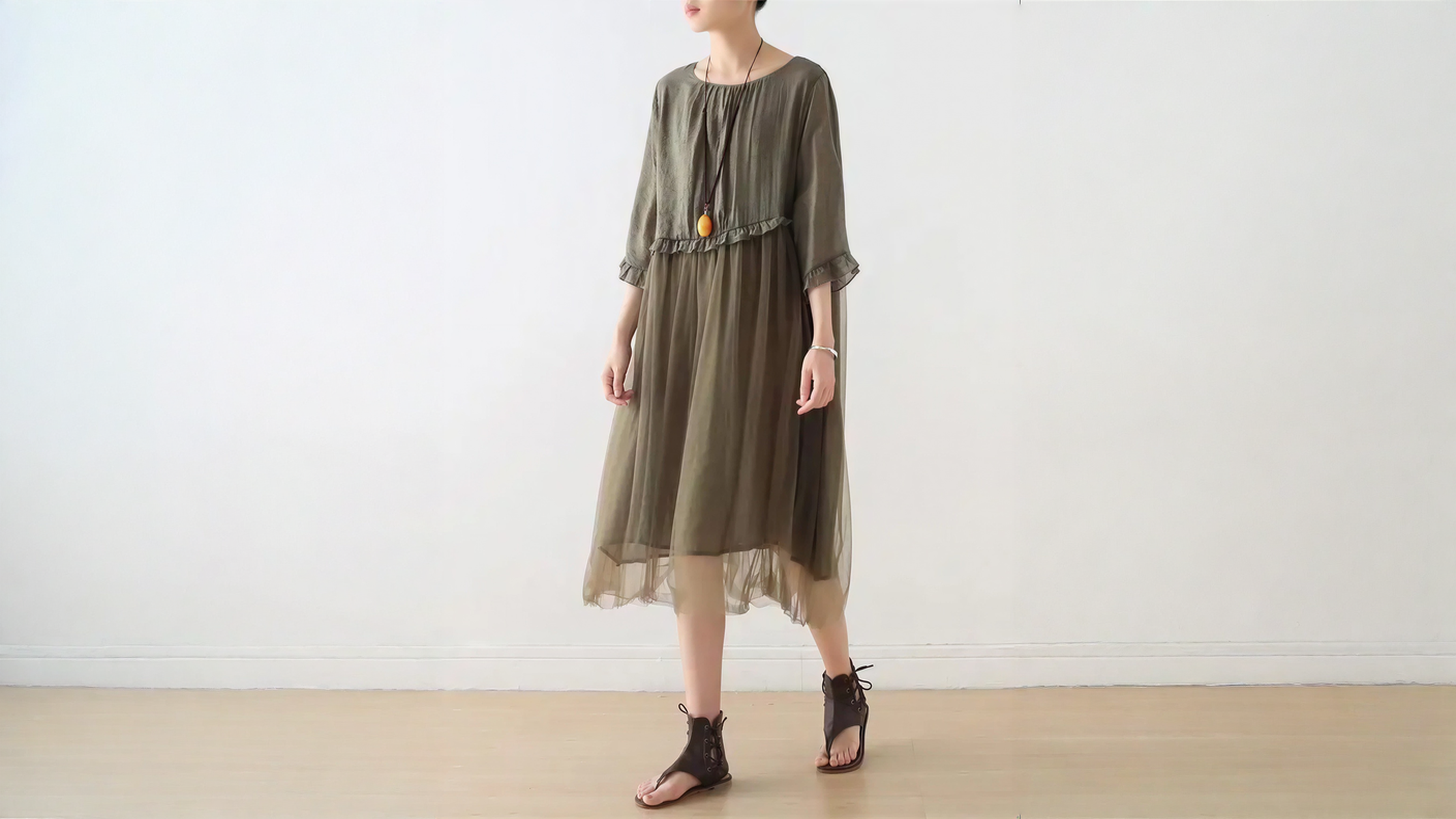 French Tea Green Tull Maxi dresses patchwork chiffon Summer Dress
